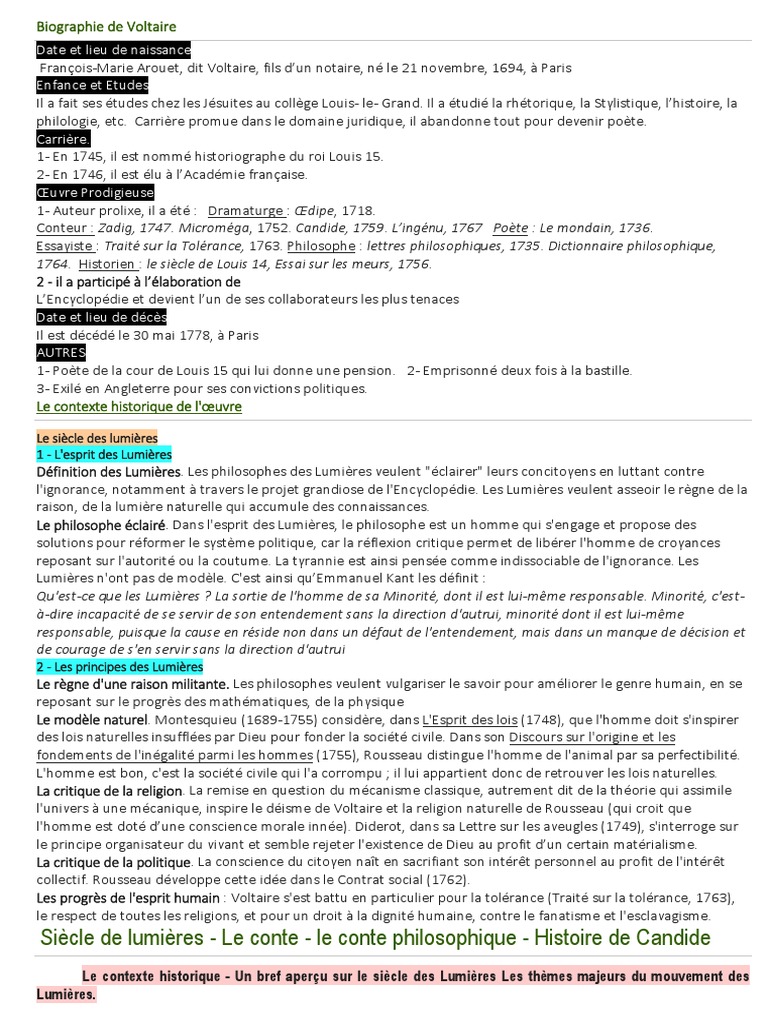 Biographie De Voltaire Pdf Candide Voltaire